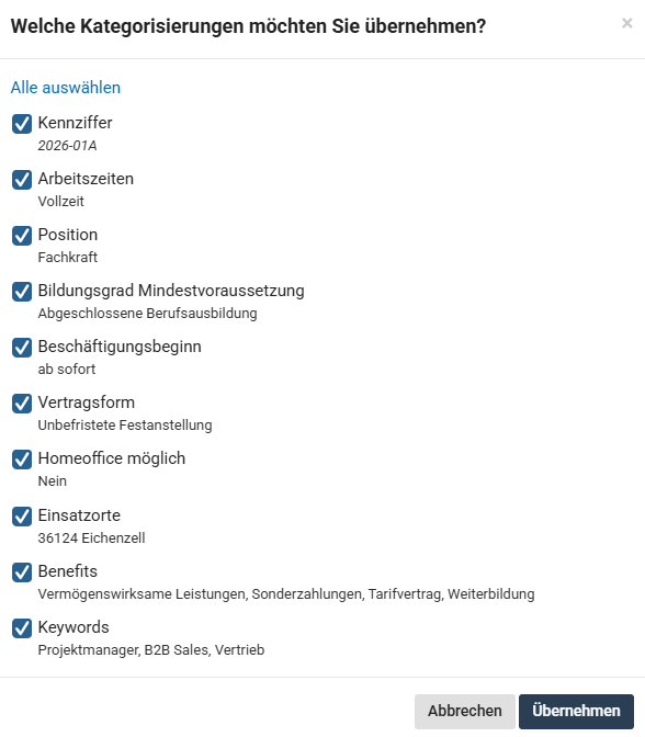 (Relevant u.a. für Anzeigen, die aus externen Systemen importiert wurden und nur aus einem einzelnen Textblock bestehen.)