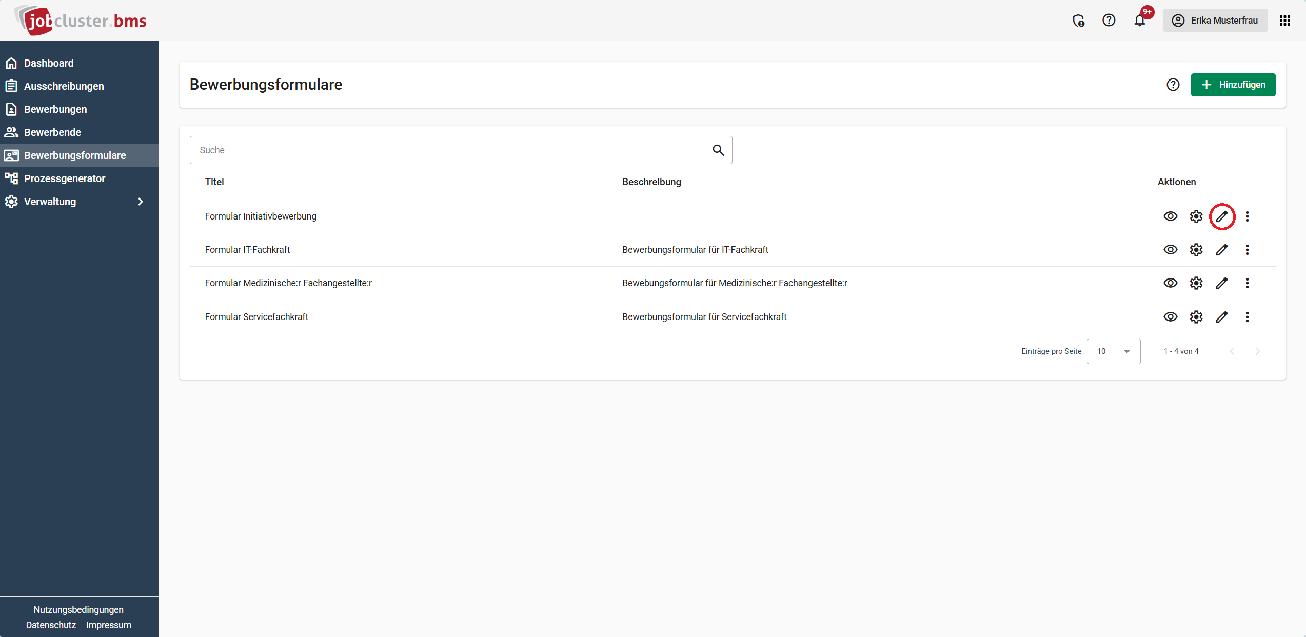 Bewerberformulare können über die Bearbeiten Aktion (Stift) bearbeitet werden.